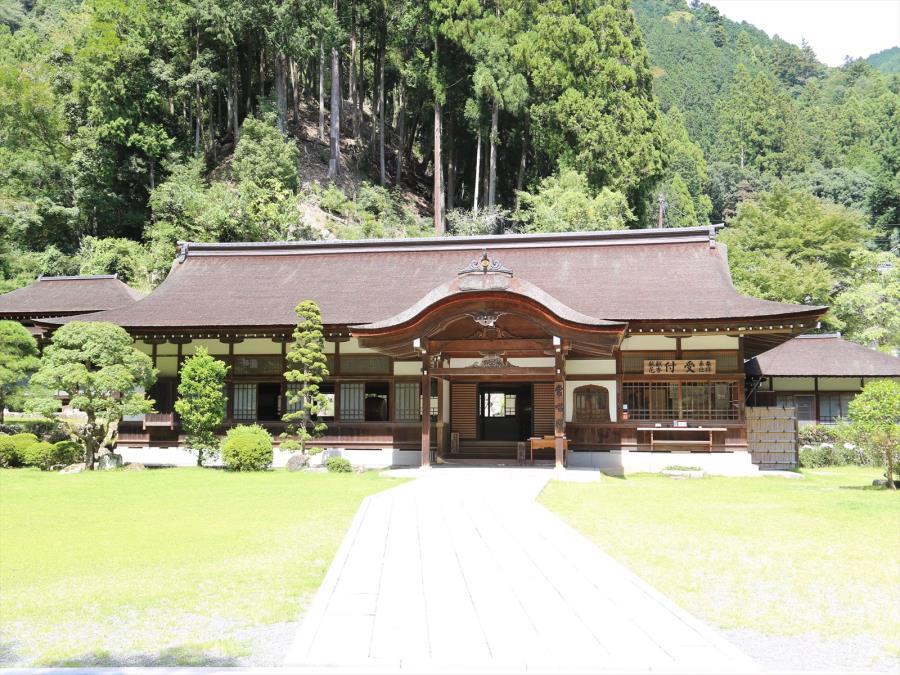 西谷の入口に南面して建つ。入母屋造檜皮葺で、正面に向唐破風の式台玄関を設け、北西に上段の間を接続する。四五畳の広間は祖廟塔に正対する西面を全面ガラス窓とし、折上格天井を張る。復古調の蟇股や舟肘木を用いるなど洗練された意匠の瀟洒な和風建築。