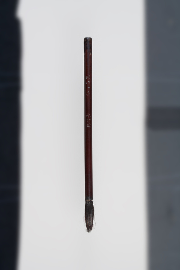 沈仁延銘象牙彫湖石花草人物図管提筆