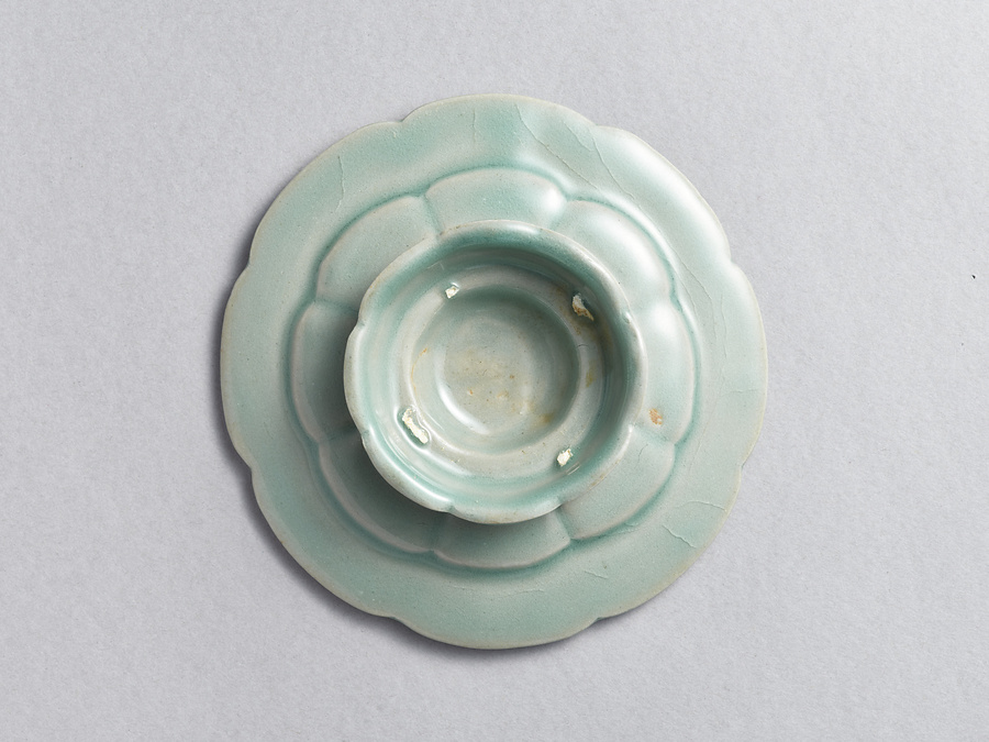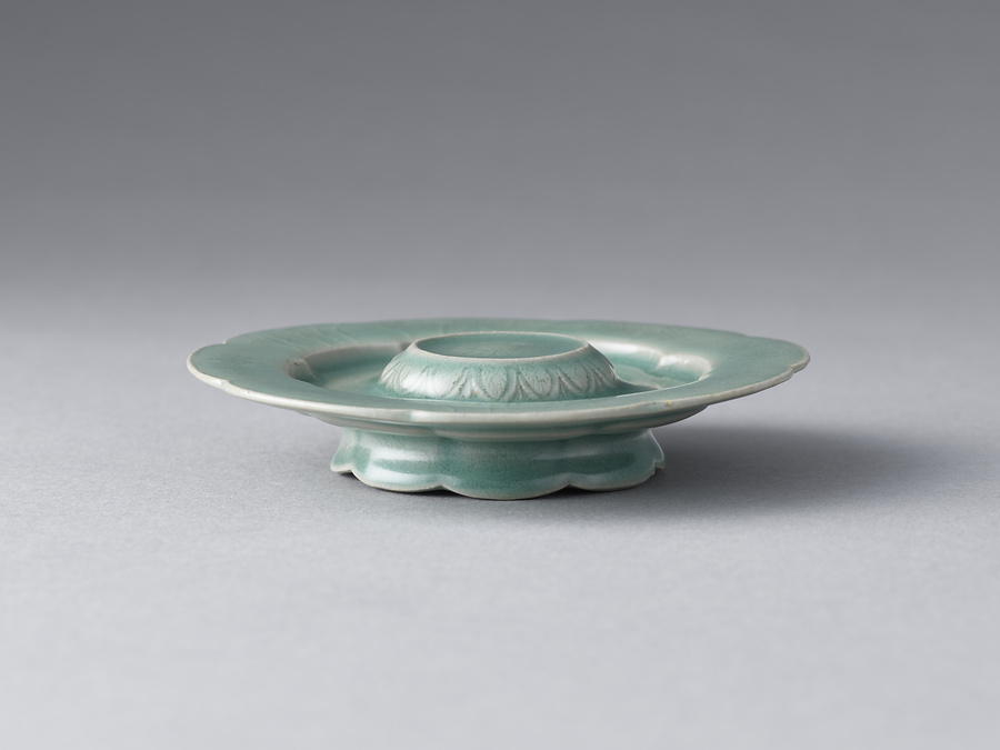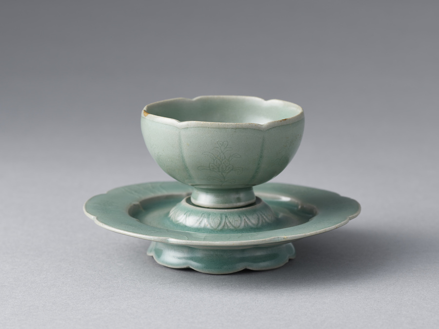 高麗時代(918-1392)の10世紀中頃、中国の青磁に憧れて、朝鮮半島でも青磁の生産が開始された。当時、喫茶の風習も伝わり、宮中行事に取り入れられるなど流行していたため、開窯当初より喫茶碗を生産した。やがて碗と托の組合せが作られるようになり、形状も喫茶用と飲酒用の2種が展開された。喫茶用は碗が大きく、托座も碗状であるが、本作品のように碗が小さく、托座が平らな形状は飲酒用である。