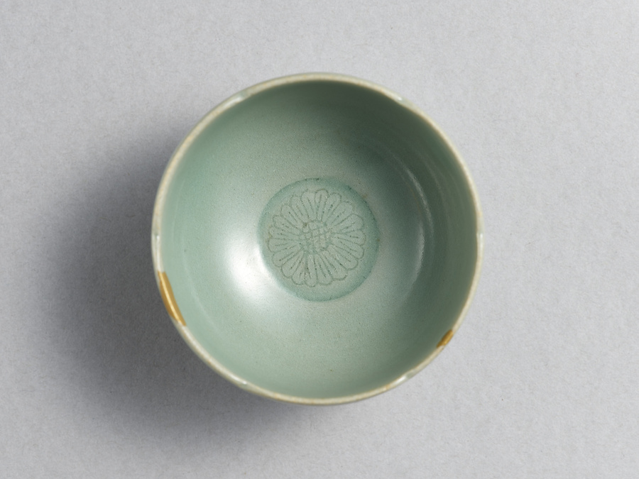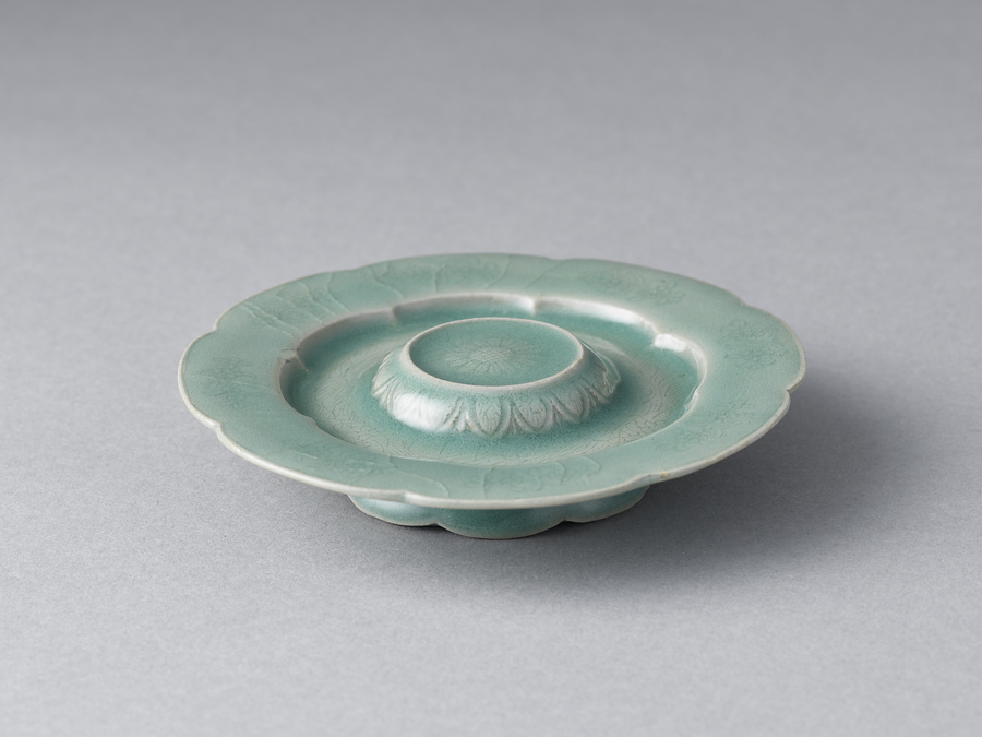 青磁劃花菊文坏・托