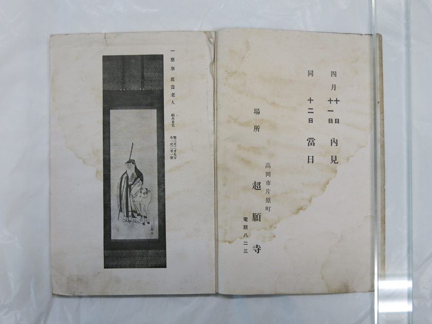 「場所 高岡市片原町 超願寺」とあるが、同寺の所在地は高岡市末広町13-42である。また、ページが1枚外れている。