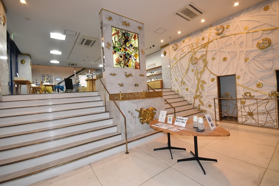 衣笠山東麓に位置し、日本画家堂本印象の作品を収蔵展示する美術館の本館。鉄筋コンクリート造地上3階地下1階建で、モダンな白色の外壁をレリーフで華やかに飾る。独創的な外観とともにスロープで廻る展示室など内外ともに印象の趣向を強く反映した美術館。