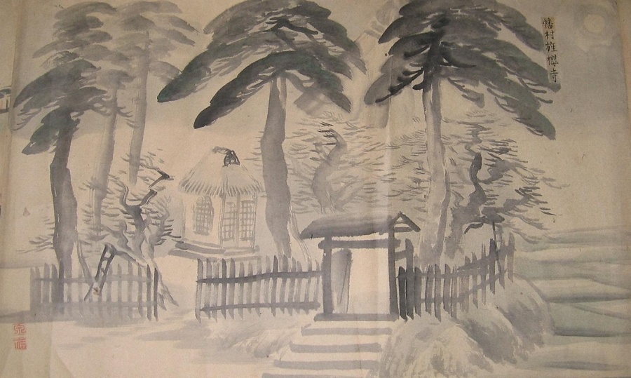 常州名勝之真景 3)「幡村旌桜寺」