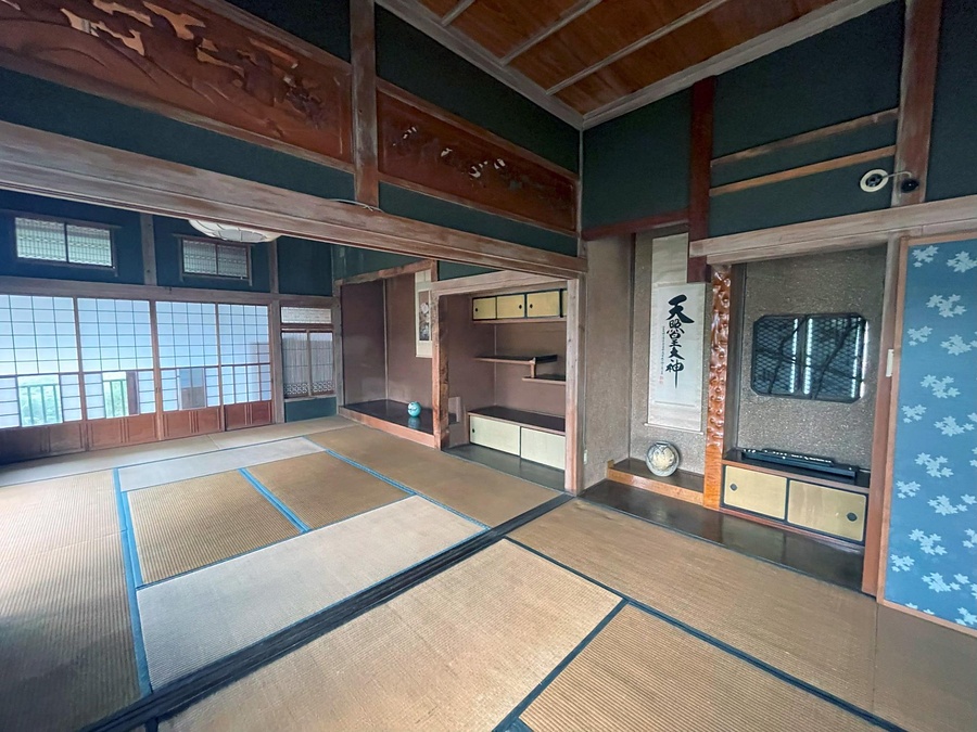 市街地の中心部に位置する旧染物店の離れ座敷。二階建切妻造桟瓦葺で、南面東寄りに入母屋造玄関を突出し、西に階段室などを増築する。南庭に面して各階3室の続き間座敷を配し、二階中の間と小脇に、下地窓を蔓枝で菱組にするなど全体に凝ったつくりの離れ。
