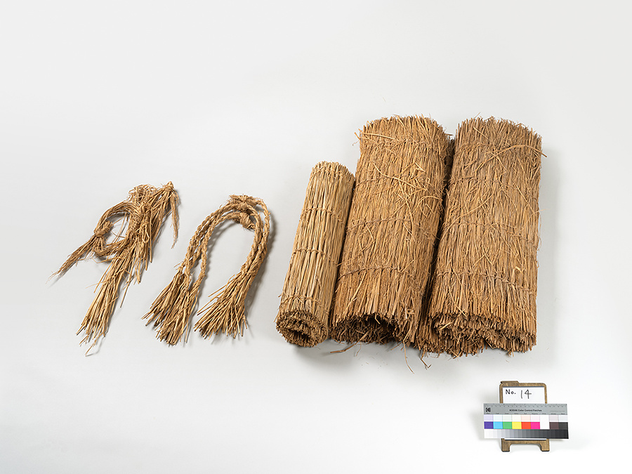 稲やワラを束ねる時よく用いる。これで結束してワラの元の部分は結ばずにからんでねじ込む。カラムシの結束には縄では傷がつくので特にこれを用いる。