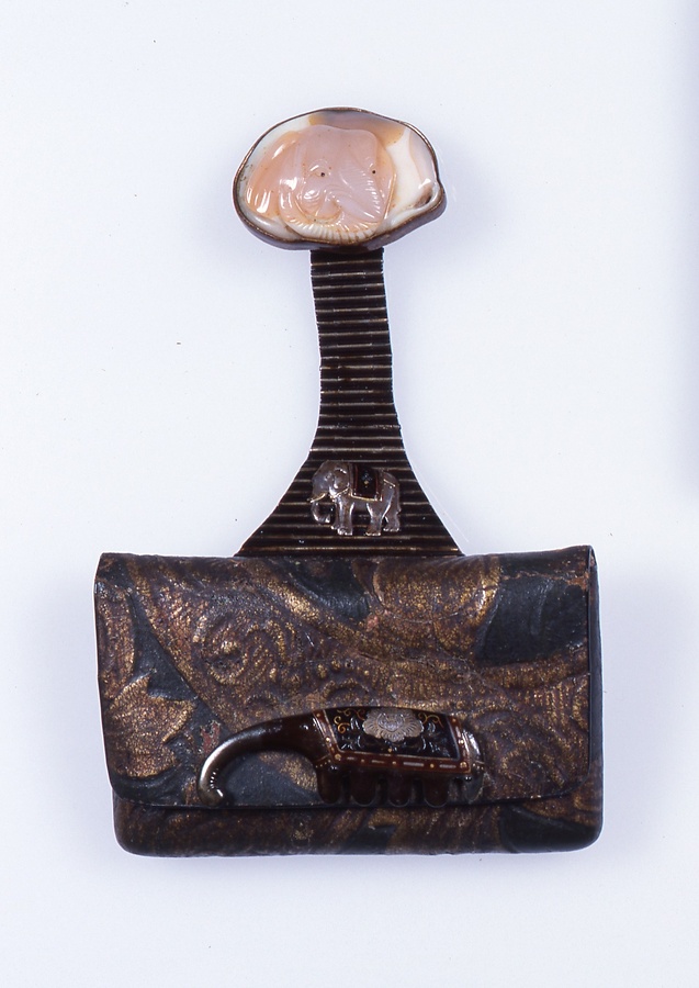 花模様金唐革煙草入象金具