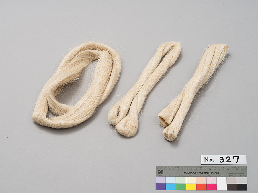 撚りかけした糸を糊つけし、カセにとった糸。資料番号:5995