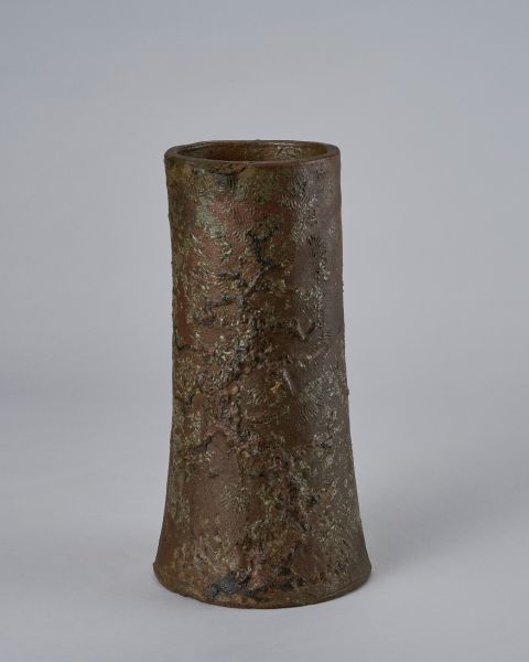 褐釉貼付松文筒花生