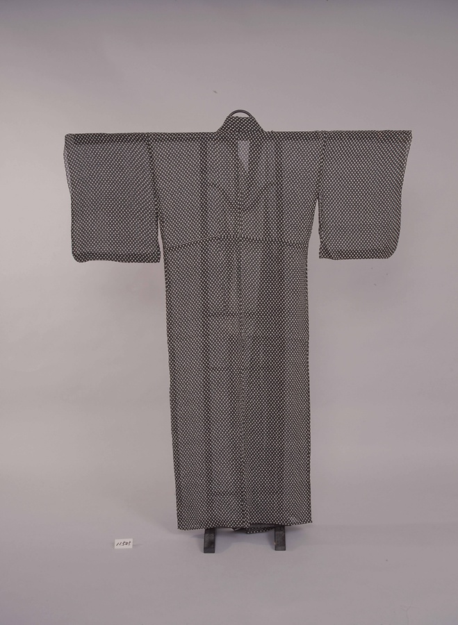抜染加工、黒地に白の魚子模様(白地に黒の斜め格子か)