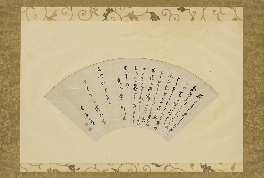 一茶は文化4年から継母・弟と父の遺産交渉をしているが、なかなかまとまらなかった、文化7年5月にも帰郷して交渉するがうまくいかず、わずか数日の柏原滞在で江戸へと戻ったことを「七番日記」に記している。この扇面は、交渉の際に、一茶が父からもらった遺言状が仲裁者である名主の嘉左衛門に取り上げられてしまったことを、切ない心情とともにつづったもの。