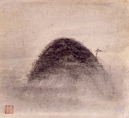水墨孤山風景図