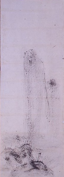 水墨孤峰山水図