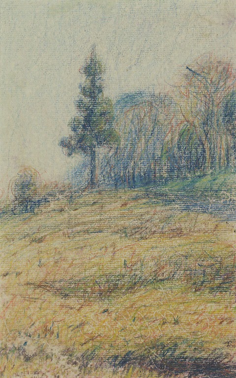 風景(森前の原に立つ木)