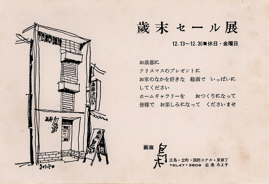 画廊「梟」で行われた、「歳末セール展」(1969.12.13-30)の案内状