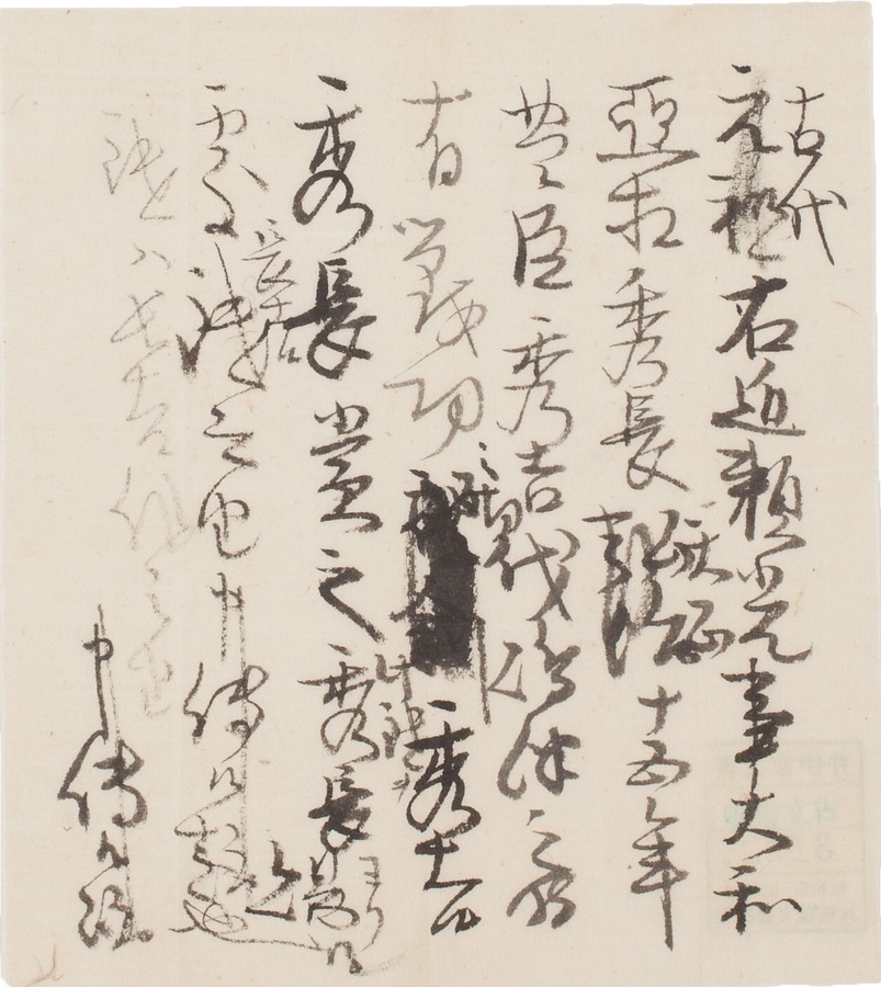 古代右近頼光についての届書。天正15年(1587)の島津討伐の戦功により、豊臣秀吉から豊臣秀長に与えられた鑓を秀長から頂戴し、相伝したものであることが記されています。
