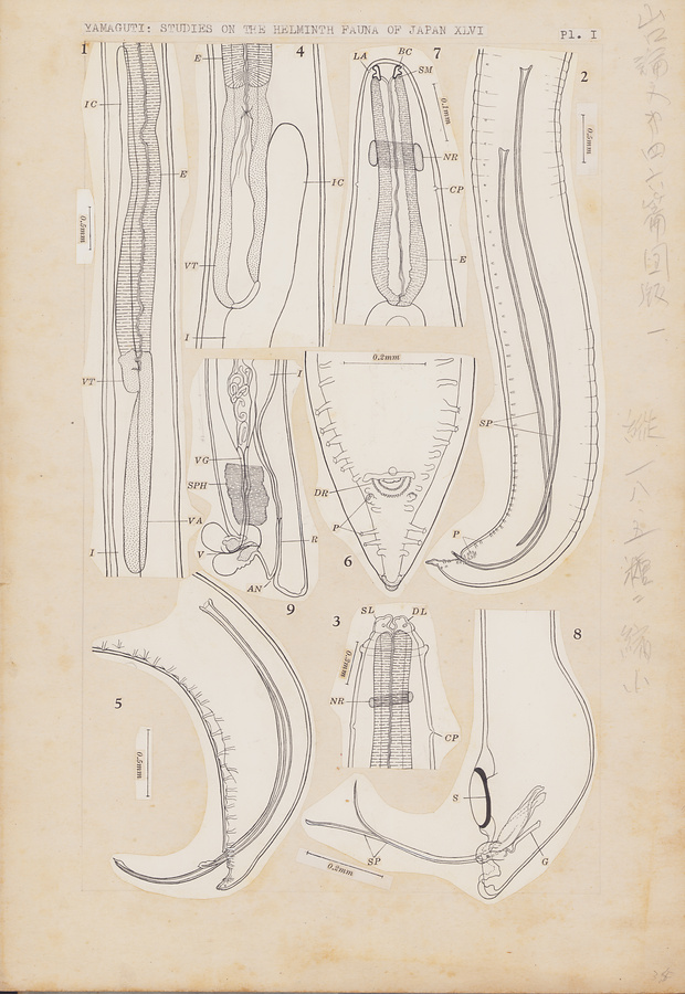 日本の寄生蠕虫相の研究,第46部.海洋哺乳類の線虫類.原図