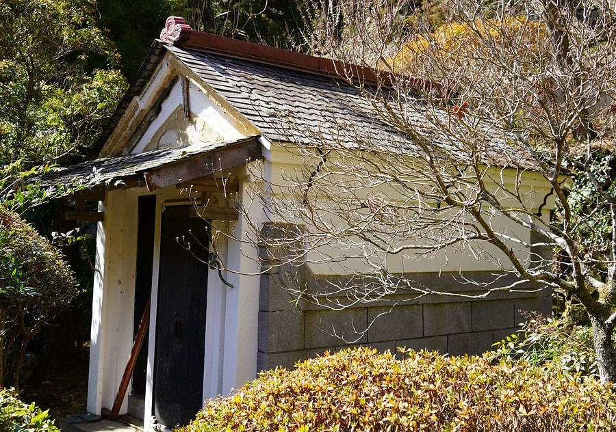 主屋の西側に東面して建つ文庫蔵。平屋建切妻造妻入スレート葺で、正面に腕木庇を付す。外壁漆喰塗仕上で軒蛇腹を廻らし、腰はモルタル洗出仕上で目地を切って石造風とする。庇の鉄製ブラケットや腰を廻る二段の水切など、小規模ながら凝った意匠の土蔵。
