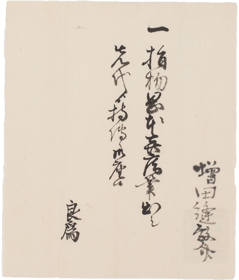 指物についての届書。彦根藩士増田次右衛門家7代目良為から提出されたものです。指物は岡本喜庵の筆で、先代より持ち伝えていることが記されています。