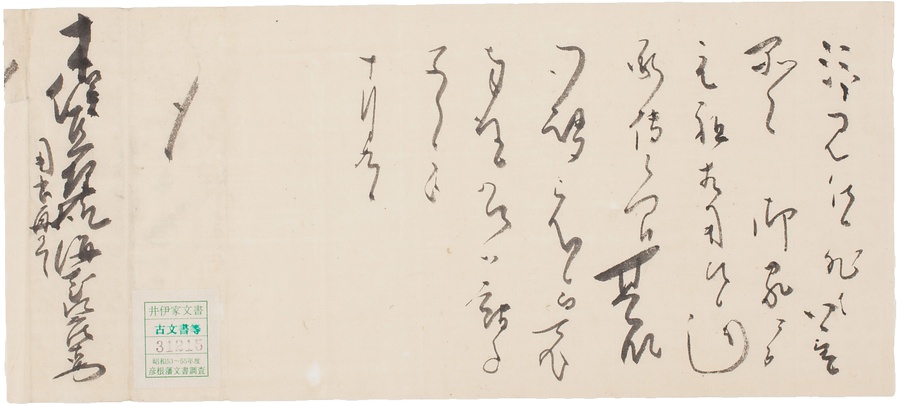 彦根藩士海老江庄右衛門家に伝来したものへの問い合わせに対して、庄右衛門が同藩士木俣亘理に宛てた返答書です。お尋ねの品々は、元祖が用いた由を相伝しているので、お認めくだされて然るべしと述べています。