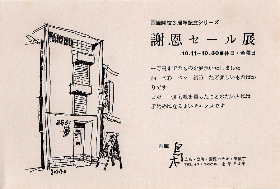 画廊「梟」で行われた、「画廊開設3周年記念シリーズ 謝恩セール展」(1969.10.11-30)の案内状