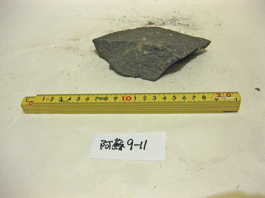 阿蘇4火砕流の一部で、こえい火砕流と呼ばれている。弱溶結で、ガラス質火山灰の直上に堆積していたもの。