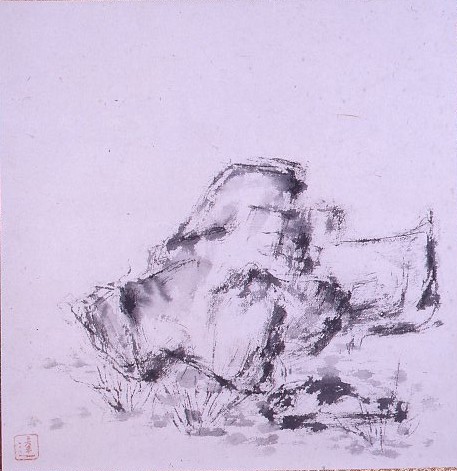 水墨孤山風景図