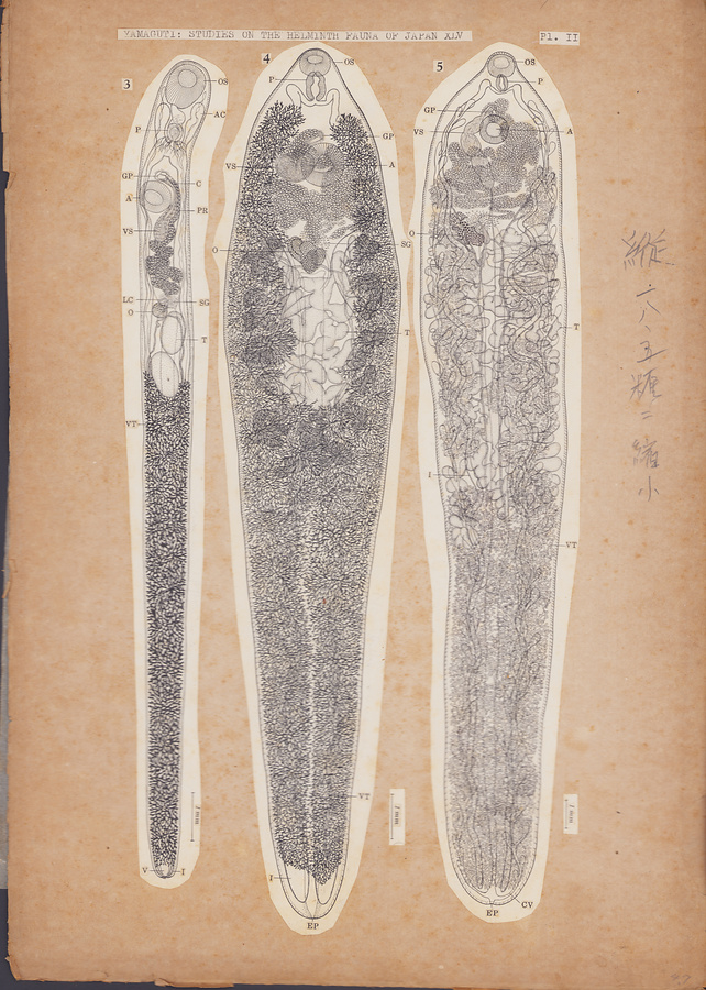 日本の寄生蠕虫相の研究,第45部.海洋哺乳類の吸虫類.原図