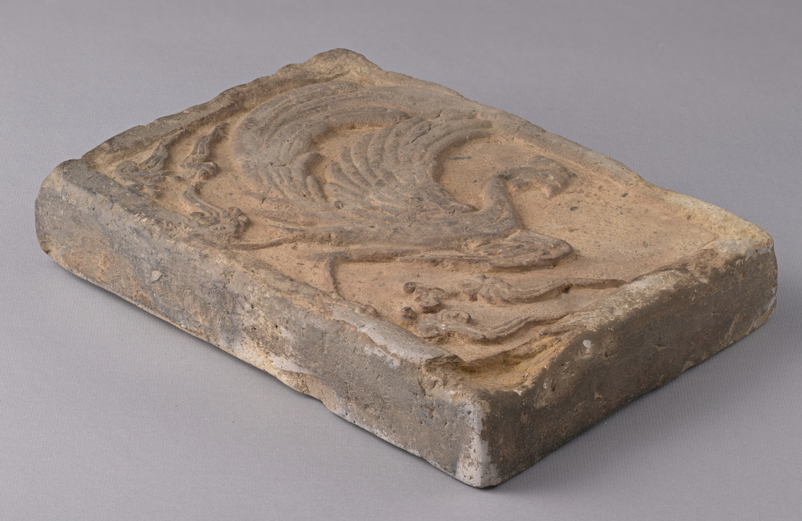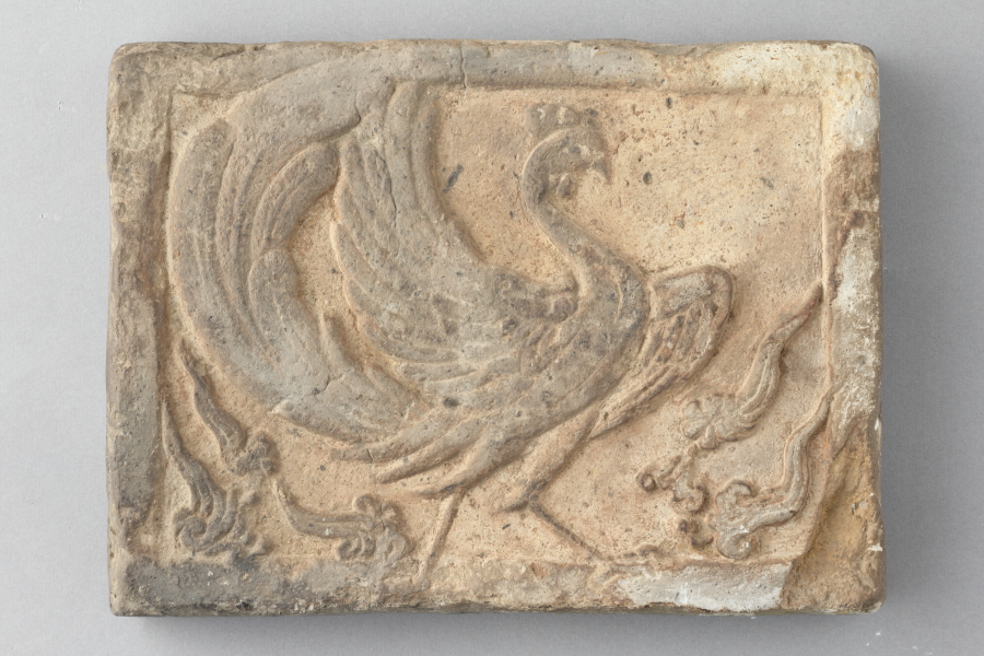 天平時代の鳳凰を描いた塼で、仏堂の腰壁にはめこんだり、内壁の装飾として使用されたりしていた。鳳凰は両翼を広げ、尾を巻き上げて雲上に舞い登る姿で、両翼から下には飛雲の文様があらわされている。遺存例が数少なく、貴重なものである。