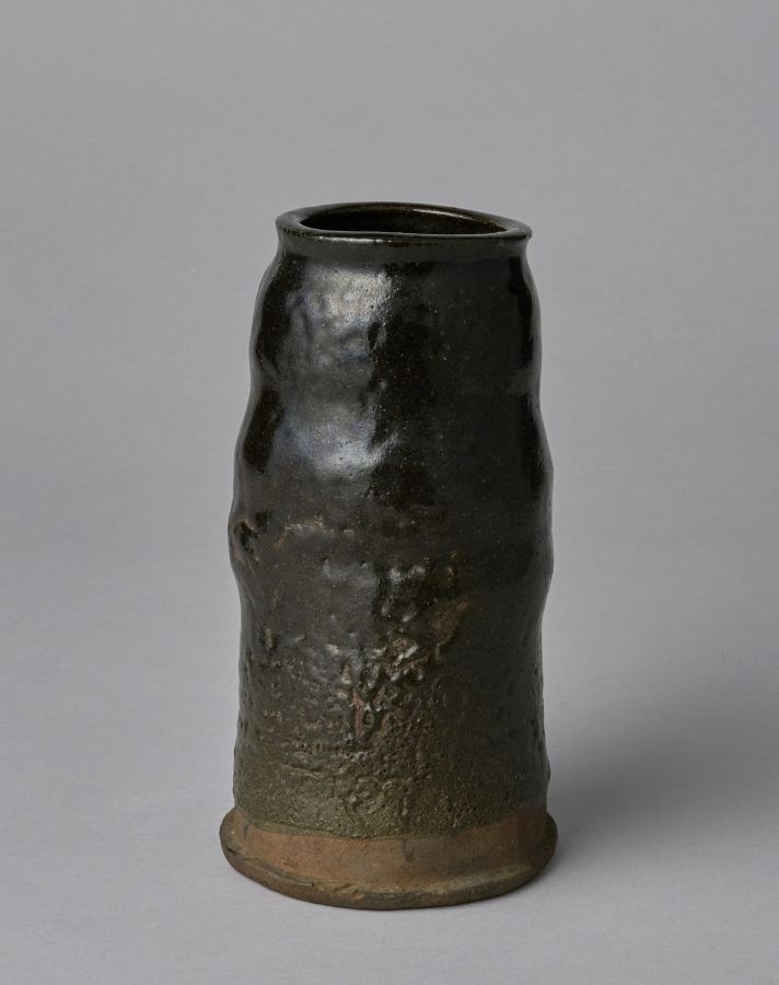 黒釉筒花生