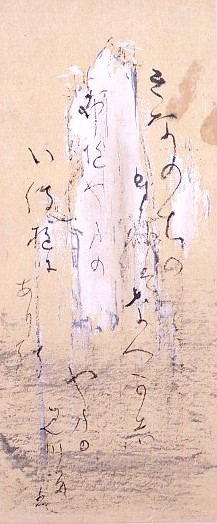 水墨淡彩落葉図画賛