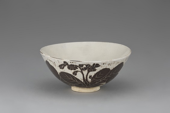 伊羅保釉岩煙草文鉢
