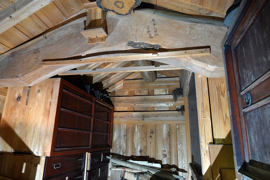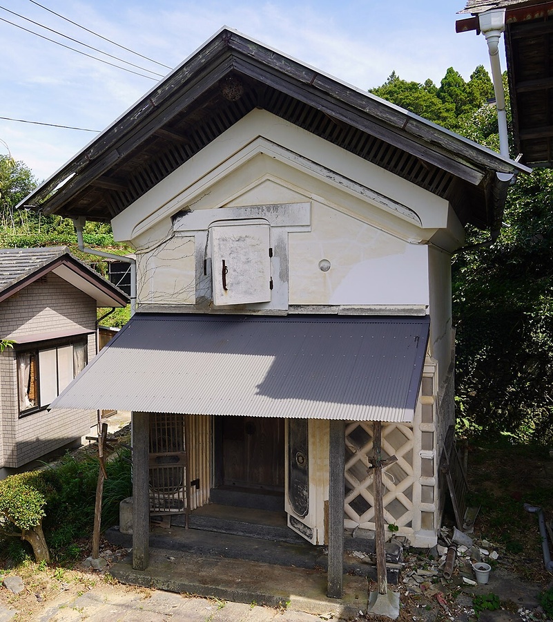 主屋の東側に南面して建つ家財蔵。2階建切妻造妻入で、屋根は置屋根形式のスレート葺。正面戸口に掛子塗戸を開き、下屋を付す。外壁は漆喰塗で腰は海鼠壁仕上。内部は側柱を密に立て、太い梁で棟木を受ける。粘板岩の一丁材を用いた下屋柱が目を惹く土蔵。