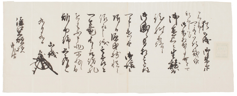 江戸時代後期に彦根藩士溝江彦之右衛門家から藩に提出された同家伝来文書の写。進上の生鮭を披露して御感を得たことを伝え、又源氏抄を受け取った旨を述べています。