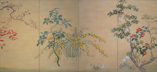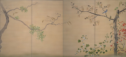 絹本着色・二曲二双屏風
