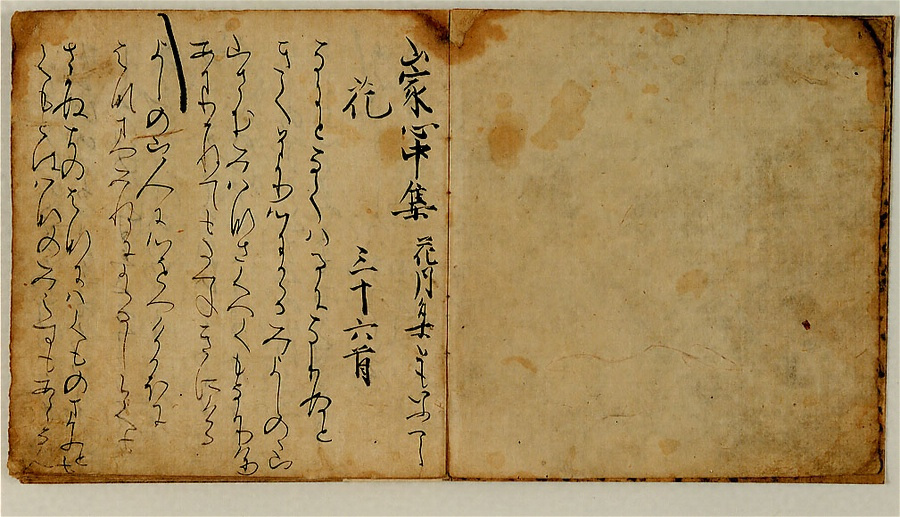 西行の作品として「山家心中集」をはじめ「山家集」「聞書集」「聞書残集」など多くの歌集が伝えられているが、本書はその異本山家集系から抜粋したものとされ、「山家心中集」の中でも最も古い写本であろうといわれている。