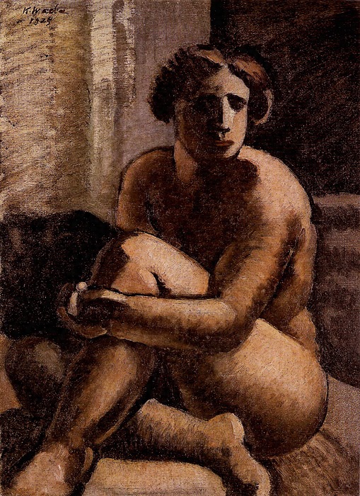 前田寛治が渡仏(1922年)した頃のパリは、エコール・ド・パリやフォーヴィスムの画家たちがそれぞれの個性や情熱を画面に噴出させていた時代であり、まさに「芸術の都」でした。『裸婦』は、前田のパリ時代の最後の時期に描かれた作品のひとつです。バランスのとれた明暗の配置、人体の解剖学的な正確さをあえて拒否した組み立てには、対象をあくまで知的に再構成しようとする画家の姿勢が感じられます。