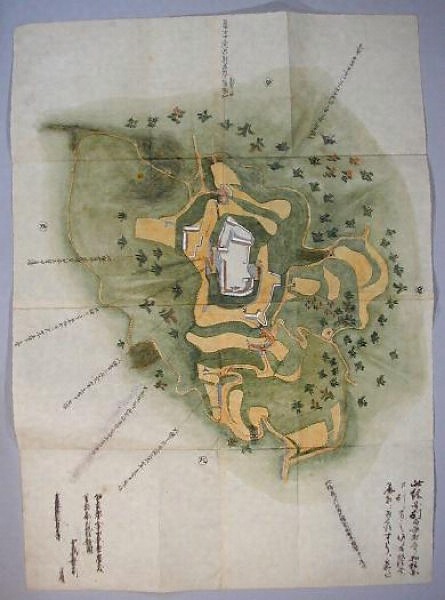 金山要害は、江戸時代には城に準じる「要害」の一つとして位置付けられた。仙台藩の中で「一族」の格式をもち二百貫文(二千石)の禄を賜った中嶋氏の居所になったところ。現宮城県丸森町金山地区の独立した丘陵の北部を利用して築かれた。頂上部の本丸を中心に数段の曲輪が配され、各所に門や馬屋・兵具蔵などの付属施設がつくられた。享保十三(1728)年十月二十一日のもの。