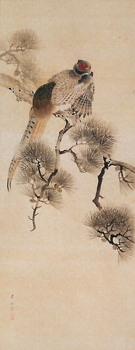 絹本着色 春雨桜雉図 蠣崎波響筆(旧花光コレクション)