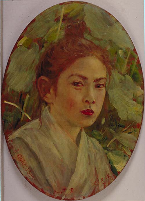 モデルの雪子は黒田の姪にあたり、橋口家に嫁いだ姉千賀の次女である。子供には恵まれなかった清輝夫妻には大層可愛がられたようで、この頃の『黒田日記』にもよく登場する。戸外の緑を背景に、目鼻立ちのくっきりした少女の顔を、速筆で明快にとらえている。第4回白馬会展に発表され好評を博した。小品だが、黒田の人物画中でも佳品のひとつにあげうる。照子夫人方の姪を描いた《もるる日影》と好一対をなしている。