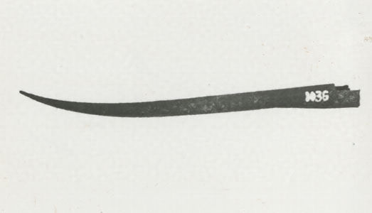 鋼板製。全長23.0cm 最大径1.5cm 藁縄をとめる部分の長さ6.5cm。