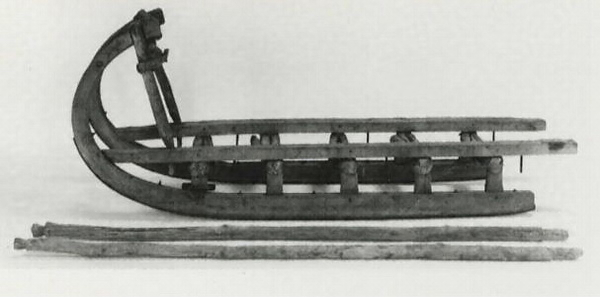 カジボウは長さ263.0cm 太さはおよそ6.5cm。橇はミズナラを材料とするという。