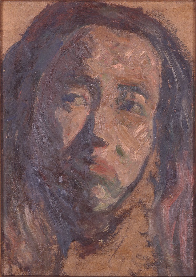 青木の油彩による自画像は本作以外に、少なくとも3点ある。美術学校在籍中のもの(アーティゾン美術館蔵)と卒業制作(東京藝術大学大学美術館蔵)のよく知られた2点、そして1904(明治37)年の《男の顔(自画像)》(大原美術館蔵)。本作以降のものは知られていないが、翌年の《日本武尊》(東京国立博物館所蔵)を描く際、自分の顔をモデルにしたという逸話がある。