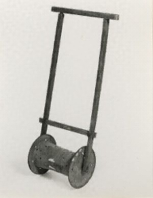 全長90.0cm 把柄の長さ46.0cm。有孔筒の直径15.0cm 幅30.5cm 導輪の直径25.0cm。
