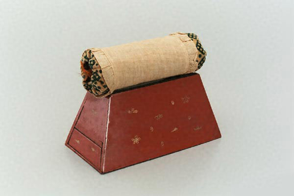 あづち枕枕は海綿状のものを布で包む。引き出しあり。