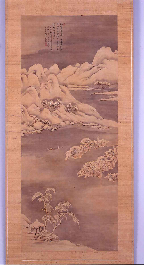 野呂介石は紀州和歌山に生まれ鶴亭や池大雅に師事し南画を描き、その後和歌山藩に仕えた。本図は水墨画の一部に淡い色を用いて描かれており、白く塗り残して表した積雪の表現や微妙な濃淡をつけた空や水面の表現に優れ、奥行きのある空間の中に冷え冷えとした冬の空気が描き出されている。