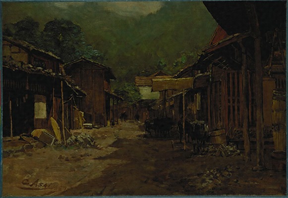 江戸木挽町に佐倉藩士の子として生れる。はじめ南画家について花鳥画を学ぶ。英学、漢学を修めた後1876年洋画塾彰技堂に入り、同年設立の工部美術学校に入学し、フォンタネージに師事した。フォンタネージの帰国後、後任の教授への不満から退学し、十一字会を結成し洋画研究を継続する。浅井はこの時期フォンタネージから学んだ詩的自然主義を展開させていた。1989年「明治美術会」の創立に参加し、第1回展での作品には独自のリアリズムが表れている。1900年から2年間西洋画研究のためフランス留学を命ぜられ、ヴェルサイユ、グレーなどで多数の作品を制作している。この時期の作風は、水彩画に印象派への接近が見られる。帰国後京都高等工芸学校に任じ京都に移って、1903年聖護院美術研究所(1906年より関西美術院)を創立して後進の指導にあたった。 工部美術学校においてフォンタネージの薫陶を受けた浅井は、師の自然観を最もよく受け継ぎ、洋画の冬の時代にあってもよくその詩的自然主義を育んでいった。フォンタネージはバルビゾン派の影響を受けた、当時イタリアでは一流の画家で、その画技と人格は生徒たちから尊敬されていた。1889年、原田直次郎らと結成した「明治美術会」第1回展に出品した《春畝》は、フォンタネージの作風の追随ではなく、日本の風土に根差した独自のリアリズムを画面に表した作品として、高く評価されているが、その2年前に描かれた《八王子付近の街》もまた、東京近郊での写生を基とした、風景画として初期の代表作と考えられる作品である。遠景に山並みを配し、近景から中景へと田舎の道に沿って並ぶ家並みを描いているが、色彩の処理や構図法、光への注意深い配慮に、浅井固有の表現が感じられる作品である。(Kj.H.)