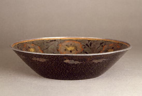 Bowl, flower design, maki-e on metal base