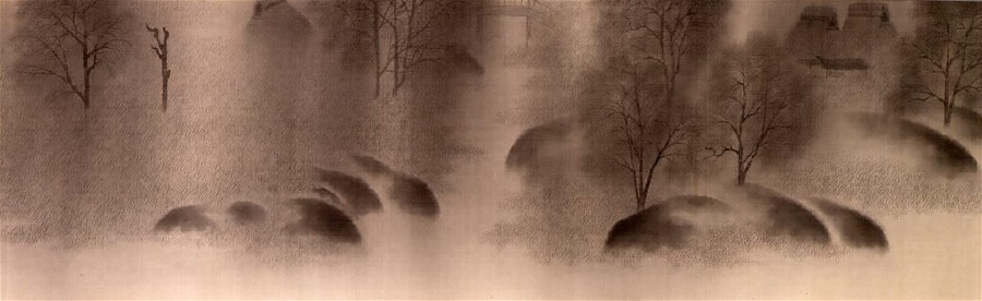 sumi on silk, scroll