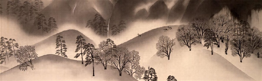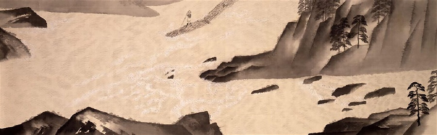 大観はそれまでにも、1910年の〈楚水の巻〉以来いくつかの水墨画巻を描いている。それらはいずれも実景に取材したものであったが、その過程で水墨表現の本質と絵巻物形式の原理を会得した画家は、逆にその伝枕的な方式の究理的実現へと駆られて、実在の奥をきわめた自由な精神に映る流転の相をテーマとして着想したのではなかっただろうか。
