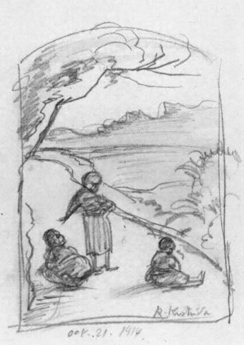鉛筆、淡彩・紙